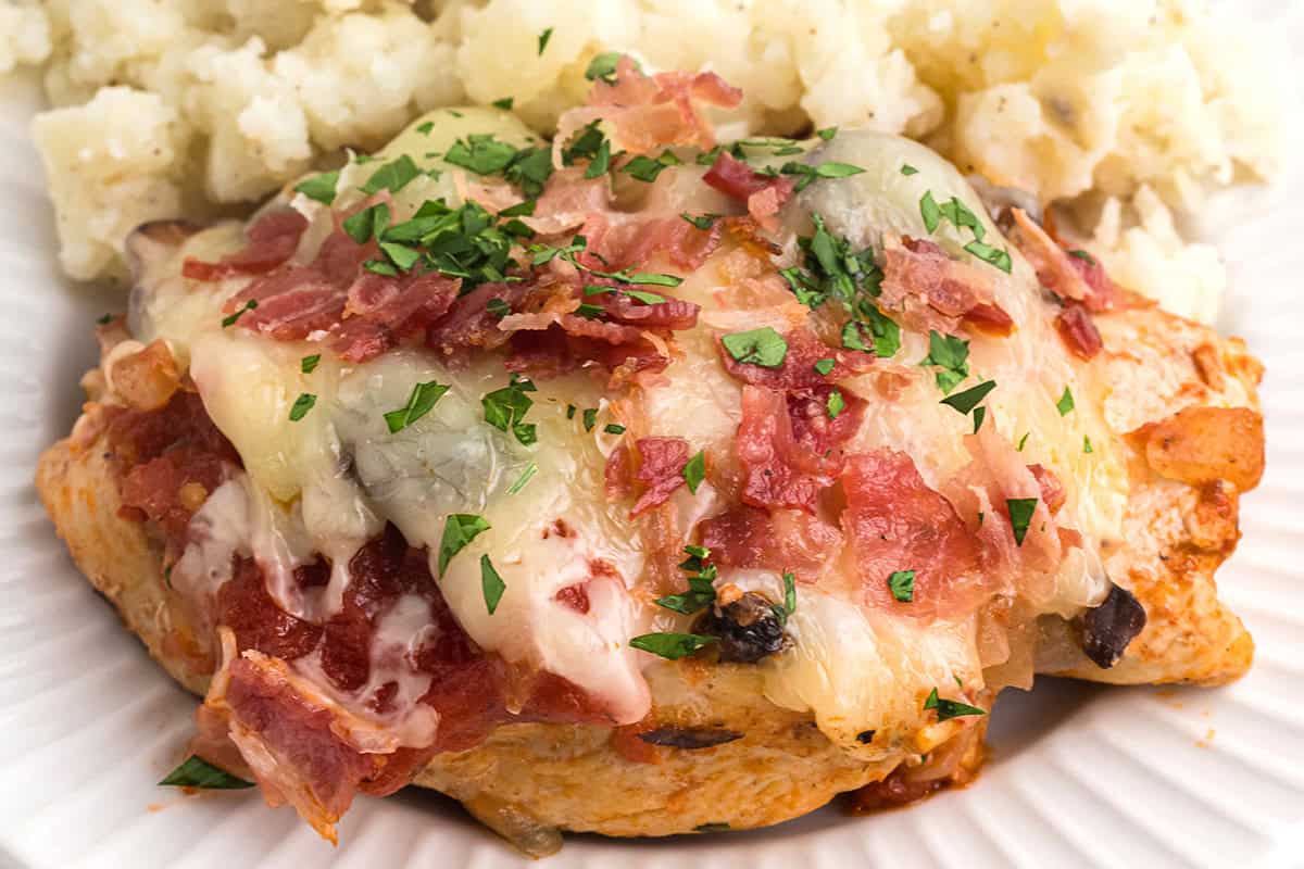 Craving a cozy dinner that feels like a hug on a plate? Try my Bistro Chicken with cheese and bacon, a simple, hearty dish that takes the comfort of a weeknight meal to new heights. With chicken simmered in a rich tomato and mushroom sauce, then topped with gooey cheese and crispy bacon, it’s your ticket to a satisfying dinner that’s ready in just 30 minutes.