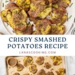 Let me introduce your new favorite side dish, my Crispy Smashed Potatoes recipe. These twice-cooked potatoes are first boiled until tender. Then they’re crushed and brushed with olive oil and fresh herbs followed by baking in a hot oven until the edges are crispy and golden brown.