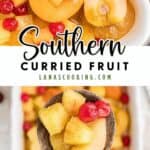 This is a fall and winter recipe that uses readily available canned fruits along with butter, brown sugar, and curry powder. When it’s cooking, the fragrance will fill your home with a beautiful holiday scent!