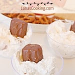 This candy bar dip has it all! It’s sweet, creamy, chocolatey, and nutty all in one. It’s really great with apple slices and strawberries but I like it best with salty dippers like pretzels.